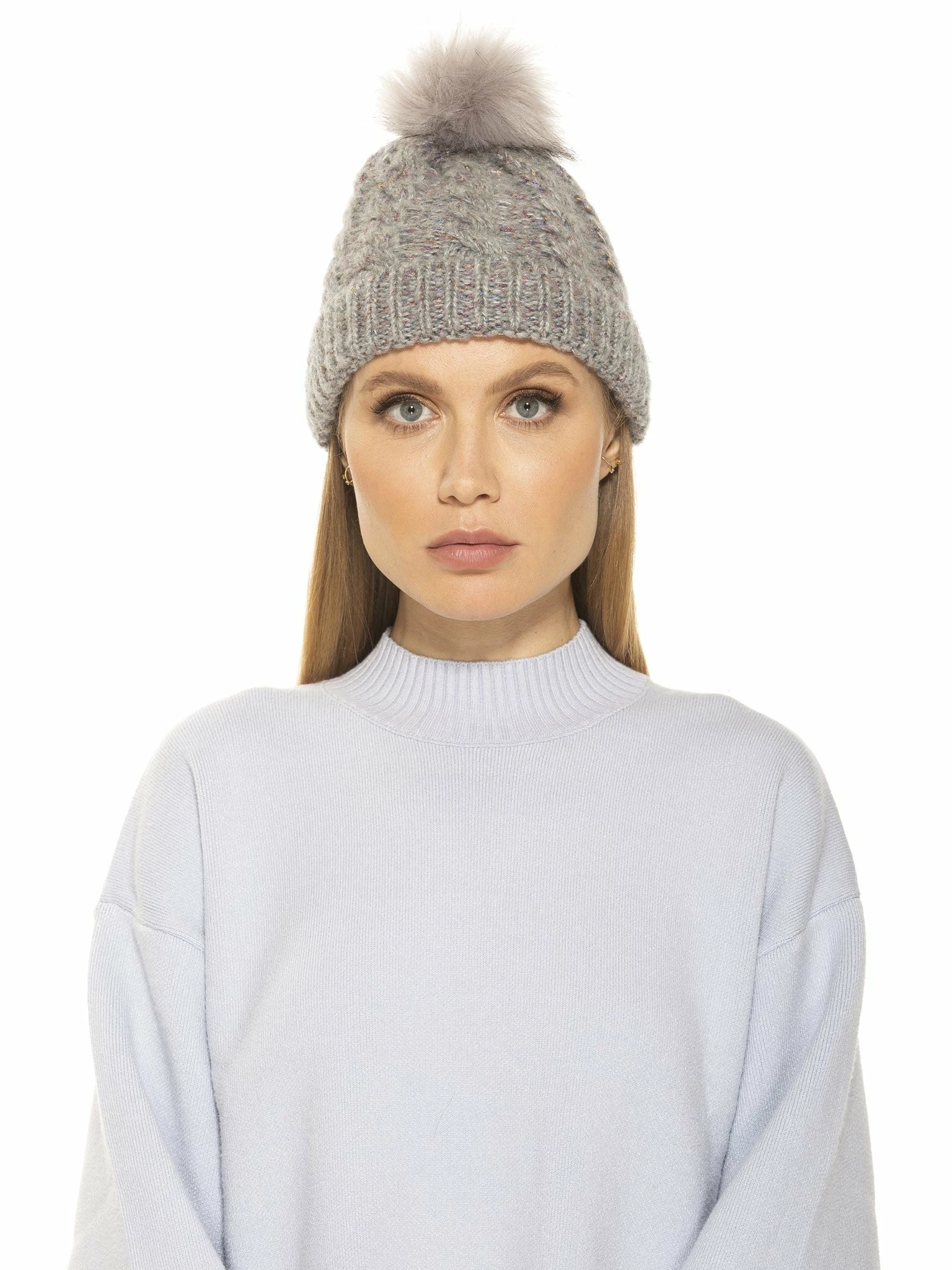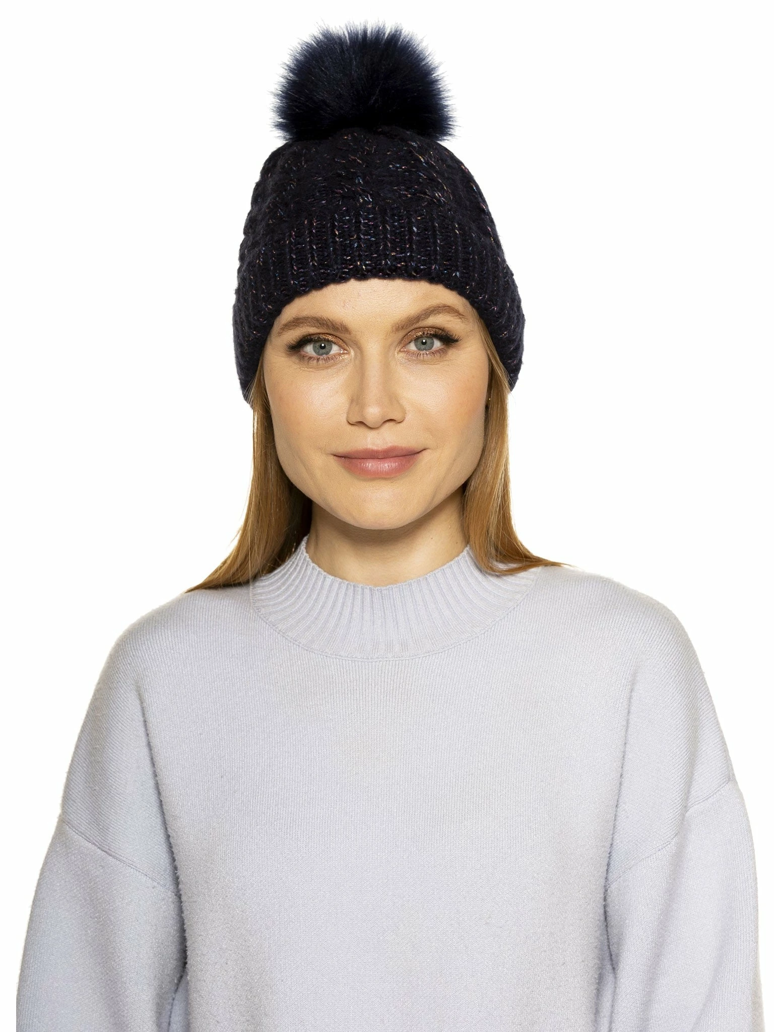 - Faux fur pom pom detail