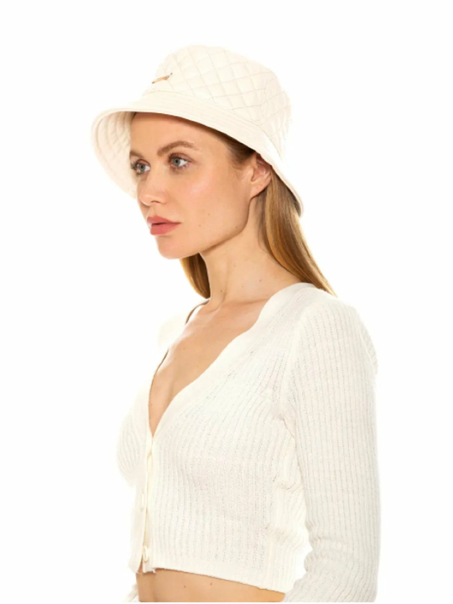 Diamond quilting and a soft faux leather add a luxury finish to a contemporary bucket hat style.
