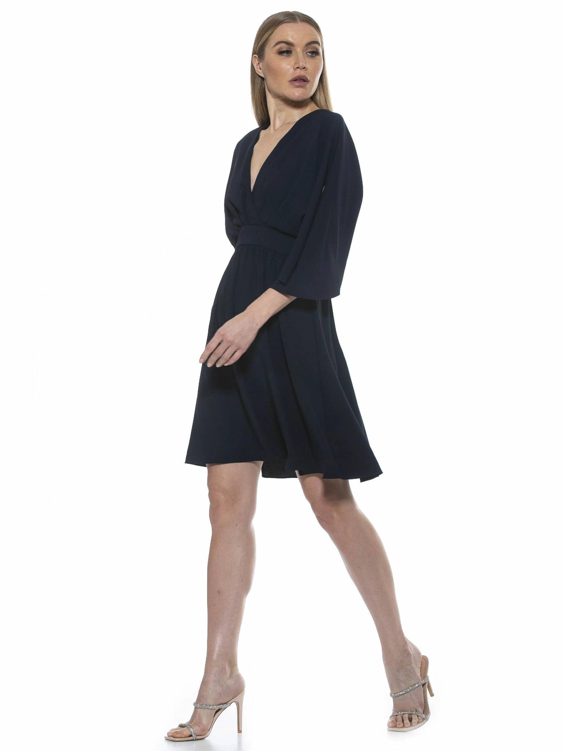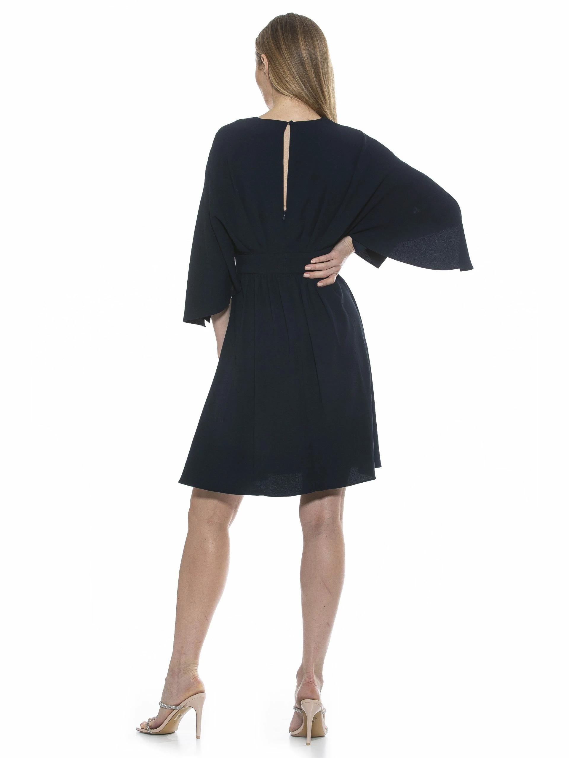 Go with the flow. The Isla is a flowy, mini dress with a v-neckline, 3/4 sleeve, and butterfly slit sleeves.