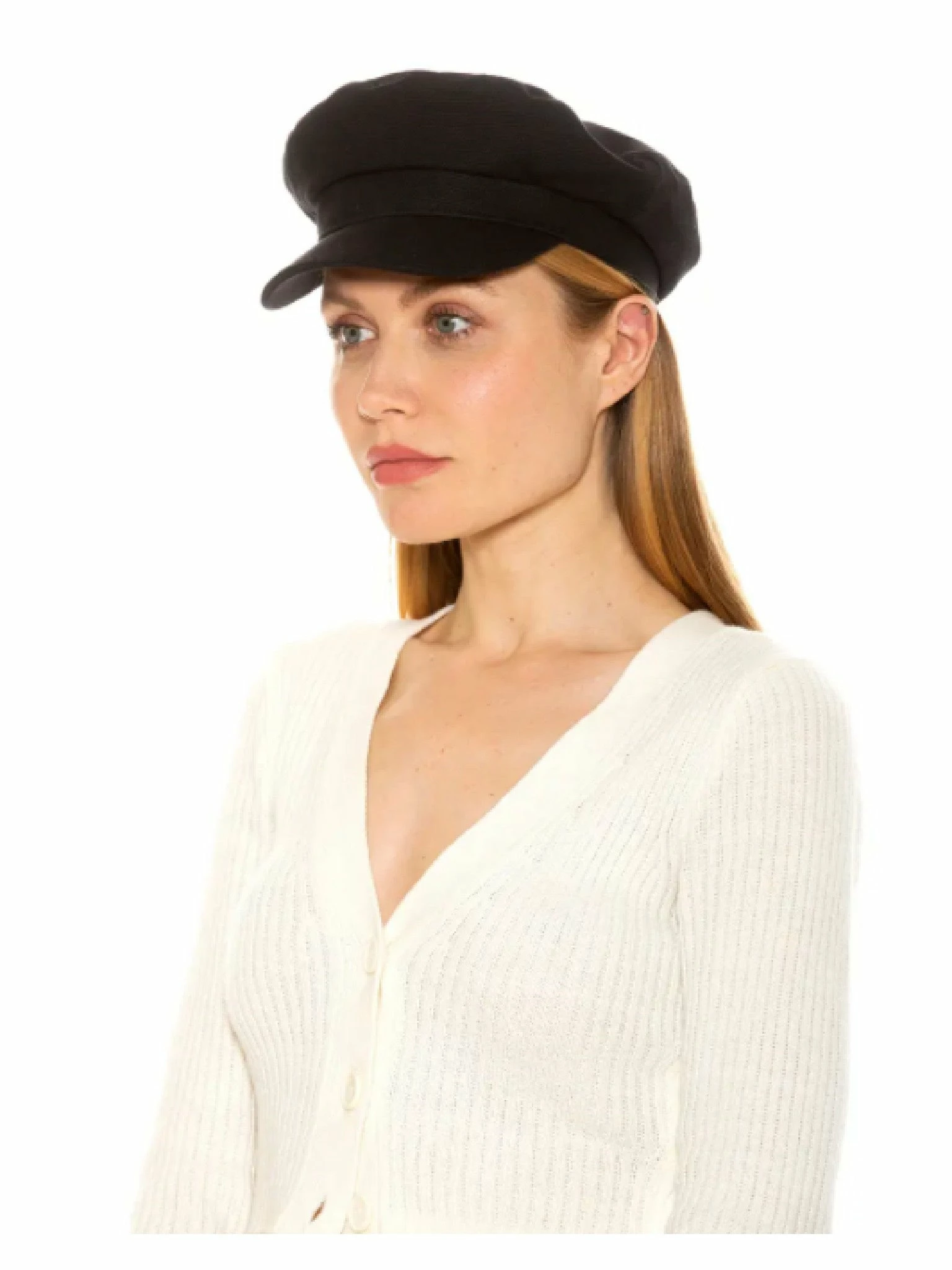 A classic newsboy hat is constructed of washable and durable canvas for a light and versatile finish.
